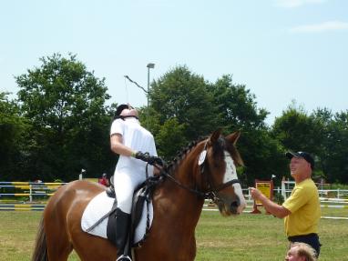 Der Nachmittag gehörte hingegen ganz dem Reiternachwuchs. Am Linsenhoff-Förderpreis, einem einfachen Reiterwettbewerb, nahmen insgesamt 35 Reiterinnen aus verschiedenen Vereinen teil und demonstrierten den Richtern Ursula Veith, Iris Schless, Andrea Schönberger, Joachim Geilfus und Ann-Kathrin Linsenhoff persönlich ihre Sicherheit in den drei Grundgangarten sowie ihre Einwirkung durch den Reitersitz in der Abteilung. Frau Linsenhoff freute sich über die zahlreiche Teilnahme sowie die Ruhe und Sicherheit, die die jungen Reiterinnen an den Tag legten.